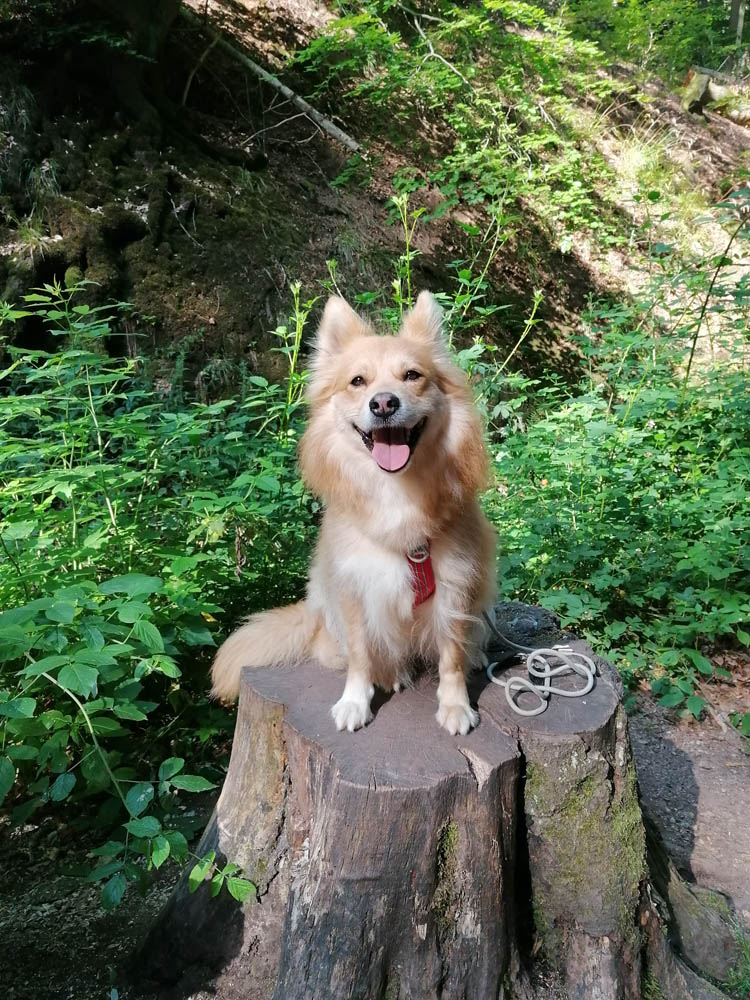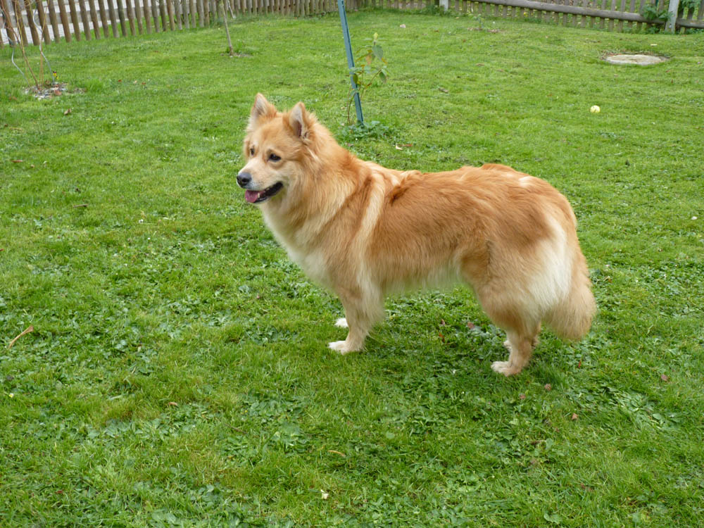 Und so würde Frauchen mich beschreiben:Angel ist ein Traumhund - mein durchgeknalltes Etwas... Sie bietet sehr viel von sich aus an und schaut viel von den Anderen ab (allerdings auch jeden Mist). Sie liebt Fressen über alles und frisst alles und klaut auch alles fressbare. Wir sind so der hoffnungslose Fall in der Hundeschule beim Antigiftködertraining. Wenn sie mal nicht auf der Suche nach was fressbarem ist, liebt sie es bei mir zu sein, um zu kuscheln. Sie liebt Streicheleinheiten und verteilt dabei auch mal gern ein paar Schlabberküsse. Hab ich schon erwähnt, dass sie Fressen über alles liebt - Banane, Möhre, Kohlrabi - wenn man nicht aufpasst würde sie einen das Essen auch vom Teller klauen, okay sie klaut regelmäßig das Essen vom Teller, eine Packung Sauerkraut ist nun ständig auf Vorrat. Sie ist halt ein richtig kleiner (B)Engel. Hab ich schon erwähnt dass sie Fressen mag? Gefrierschrank öffnen ... Check. Dörrautomat öffnen... Check. Küchenschrank öffnen... Check. Babygitter in der Türe überspringen um in die Küche zu kommen... Check. Man lernt definitiv dass es besser ist aufzuräumen. Aber ich liebe sie trotzdem. Sie ist mein Hund mit der größten Lauffreude und sie liebt es am Dogscooter zu laufen. Ausstellungen sind nicht so ihr Ding, außer wenn wir eine Runde durch die Verkaufsstände drehen und sie was zu fressen abstauben kann. Sie ist wie meine anderen Hunde sehr sozial, kommt mit fast allen anderen Hunden sehr gut aus. Aufgrund des Katarakts (Grauer Star) darf Angel nicht in die Zucht, der graue Star wurde im Alter von 18 Monaten bei ihr festgestellt, sie wird nun bald 10, bisher hat sie keinerlei Beeinträchtigungen und äußerlich sieht man an ihrem Auge keine Veränderung, nur ein Fachmann mit Spezialinstrumenten kann den grauen Star erkennen, Augentierarzt bezeichnete es als stationären Katarakt.