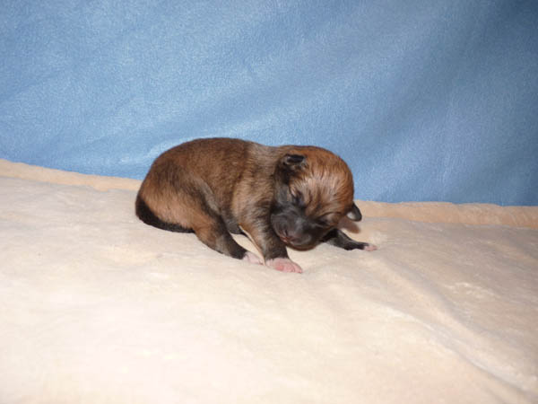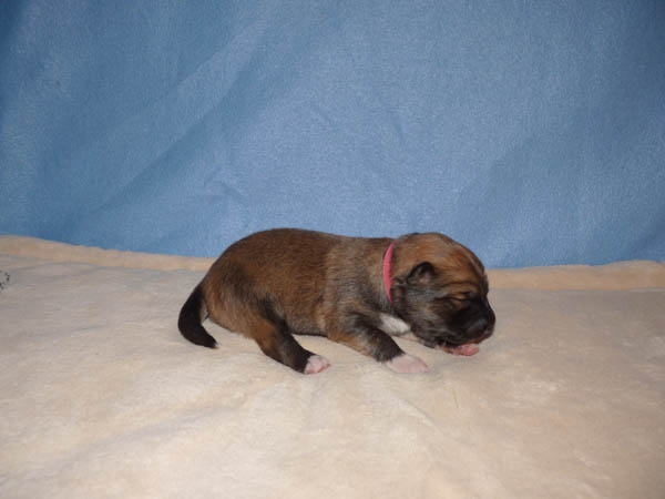Angel, meine Flunder. Sie stammt aus meinen ersten eigenen Wurf, mein kleiner (B)Engel. Sie hat eine hohe Kunst entwickelt eins mit dem Fußboden zu werden, wenn sie etwas nicht mag. Angel ist eine absolut verfressene Maus. Bei ihr hat man schnell gelernt, dass man besser nichts stehen lässt. Vom Charakter ist sie einfach traumhaft, leicht zu erziehen, stets gut gelaunt und verfressen. Sie ist freundlich zu jeden und auch mit ihren 9 Jahren eine absolut aufgedrehte Maus. Aufgrund einer Augenerkrankung darf sie nicht in die Zucht, eine Abgabe nur auf Grund von Zuchtuntauglichkeit kommt für mich nicht in Frage, also spielt sie Tante für die Welpen, leider mag sie diesen Job nicht besonders, aber so lernen die Welpen auch schnell, dass es Hunde gibt, mit denen mit nicht alles machen darf. Allerdings ist sie ungewollt schwanger geworden, und wurde Mama von einen Haufen absolut großartiger Welpen, diese allerdings das aus für meinen Zwinger Perle des Nordens unter dem DCNH bedeutete.