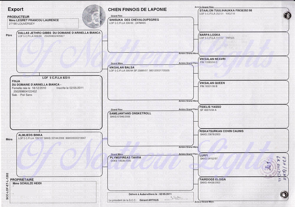 Zuchtbuchnummer: VDH/DCNH LK 00075/12 (LOF 5 C.FI.LA 822/0)