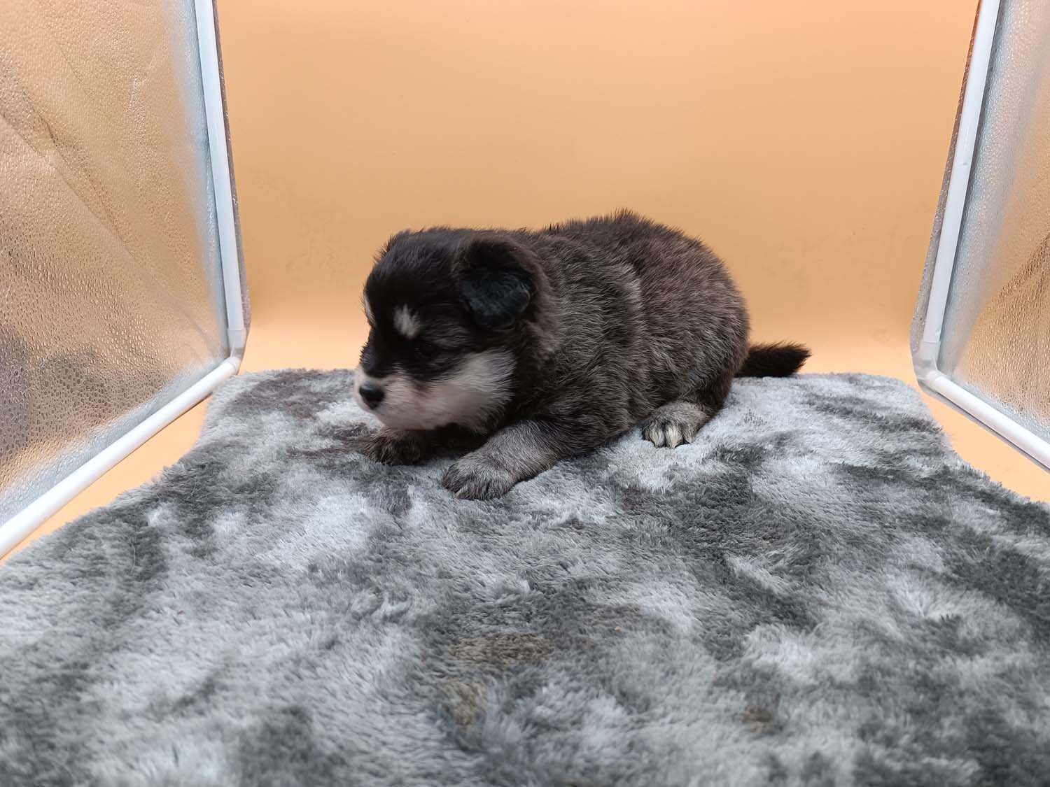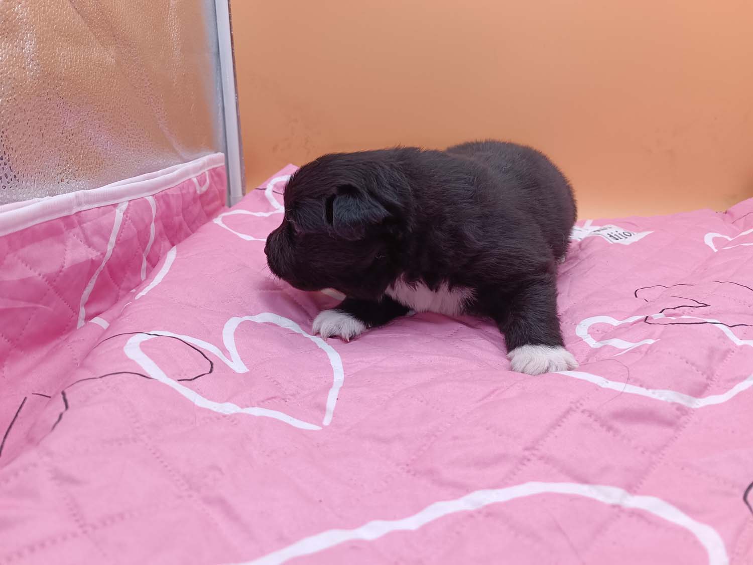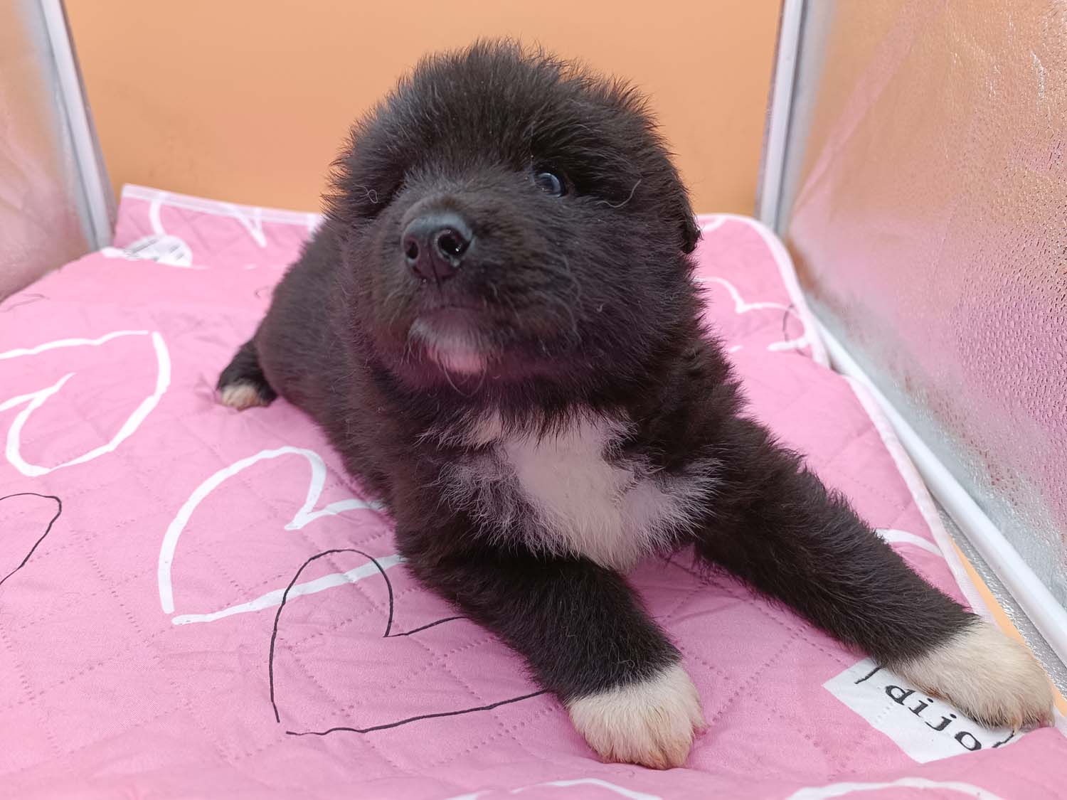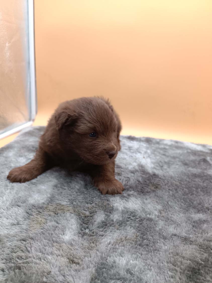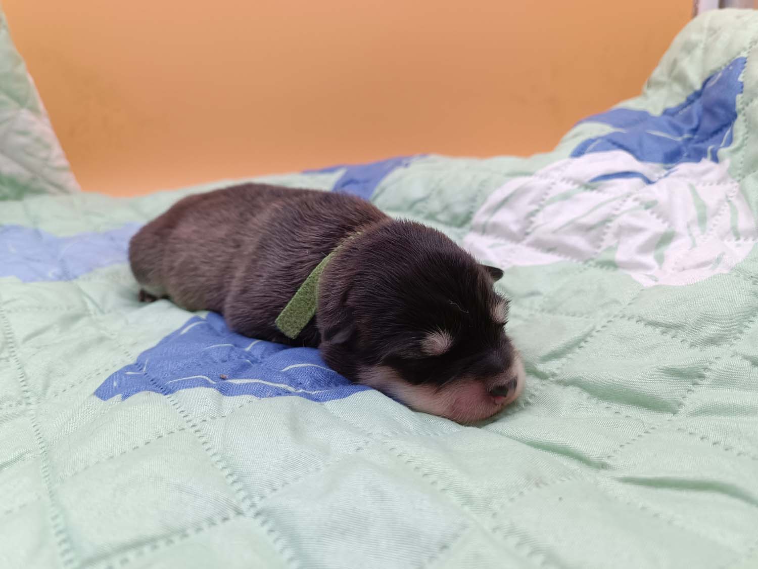 Bei der 3. Hündin bin ich mir noch nicht sicher welche Farbe sie mal haben wird. Ich denke schwarz, die Besitzerin vom Deckrüden meint sie erkenne ganz dezente Tan-Abzeichen. Ich sehe sie nicht wirklich, ich könnte theoretisch einen Gen-Test machen, dauert etwa 4-5 Wochen, bis dahin vermute ich aber dass wenn es wirklich tan abzeichen sind, sie deutlicher werden. Diese Abzeichen bilden sich auch erst innerhalb des ersten Lebensjahres richtig aus.