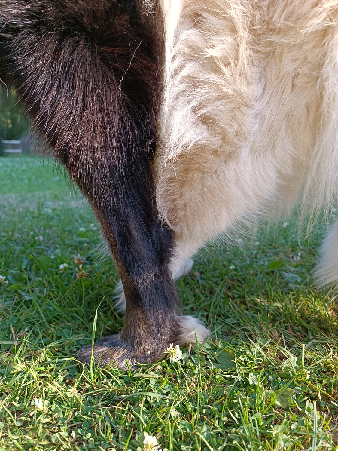 Sunny, die erwachsene domino-Hündin im Video ist Hexis Mama. Sunny hat heute entschieden, den Wurf zu adoptieren, was Hexe gar nicht gefällt. Man kann deutlcih im Video sehen, wie angespannt Hexe ist und man kann auch deutlich ihr Dominanz-Verhalten sehen, da wo sie den Kopf/Körper über Sunny beugt, ist es deutlich zu erkennen. Beide dürfen momentan nur zeitgleich zu den Welpen, wenn ich dabei bin. Ansonsten darf nur Sunny zu ihnen, sie hat wie man im Video auch sieht eine Engelsgeduld mit den Welpen oder der Rest der Hunde, Hexe hat keine Probleme wenn Ohana, Kiwi oder Emma mit im Auslauf sind. Ich hab das Video dann auch abgebrochen als die Lage mir zu angespannt wurde zwischen den beiden und hab Sunny herausgerufen.