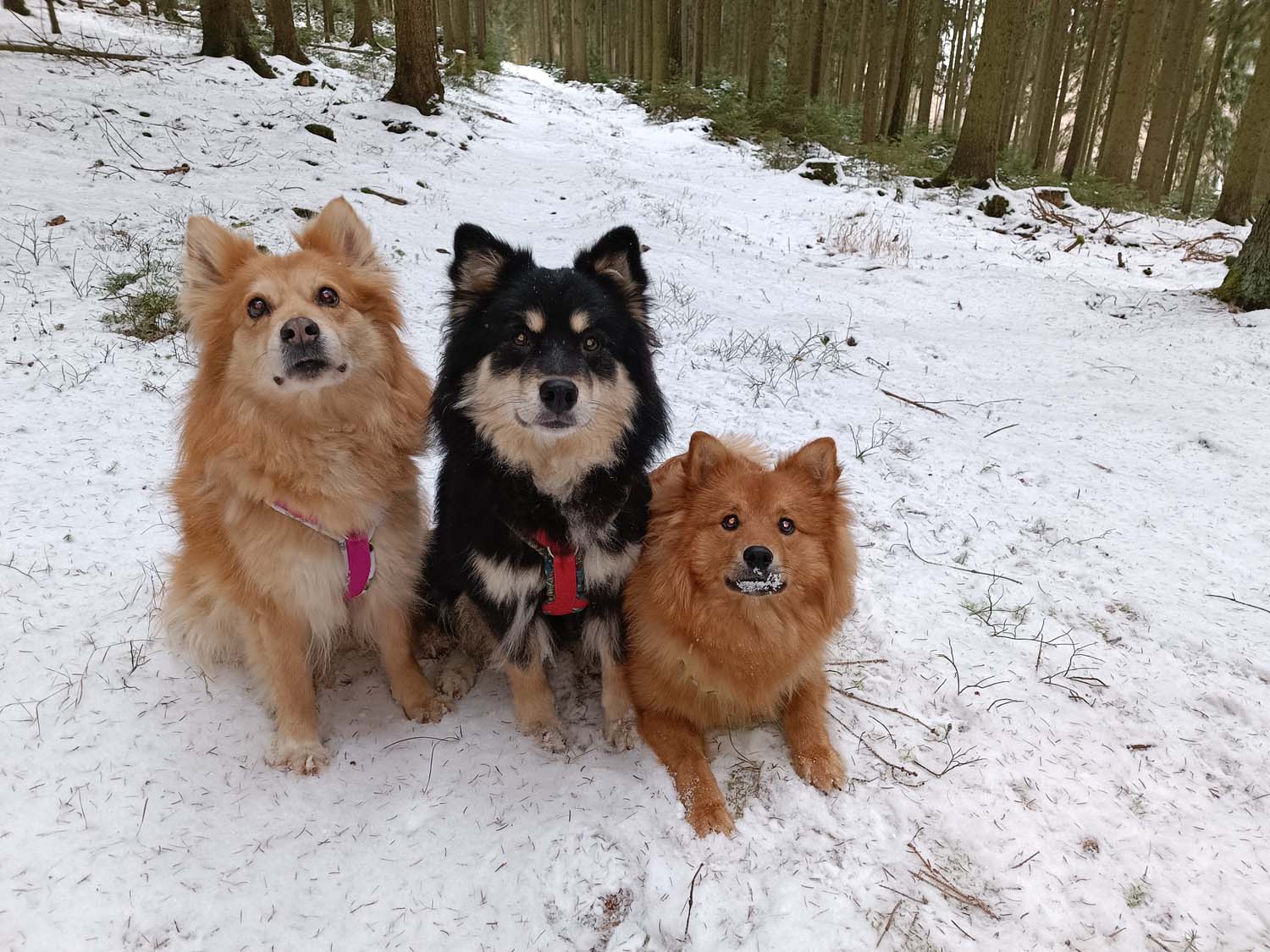 Und schon haben wir 2026. Heute waren wir beim Ultraschall. Hexe hat es wie immer spannend gemacht. Sie weigert sich ihre schlanke Figur aufzugeben. Aber der Ultraschall hat es gezeigt, Hexe hat Untermieter an Board. Leider habe ich vor Aufregung vergessen ein Foto vom Ultraschall zu machen. Asche über mein Haupt. Momentan genießen die Hunde den Schnee.