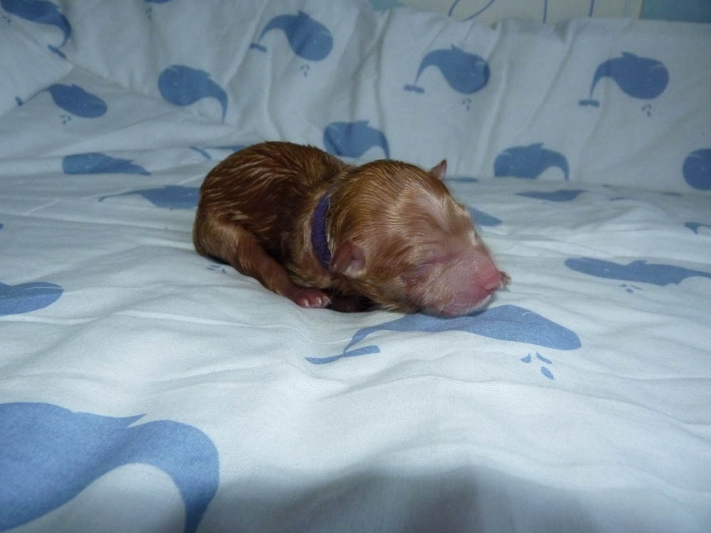 Beschreibung:Der Zwerg lebte leider nur 2 Tage, am Abend hat sie noch kräftig ihre Brüderchen aus den Weg geschoben und 4 Stunden später lag sie leblos in der Wurfbox. Außer das sie Milch in der Lunge hatte, wurden keine Veränderungen gefunden.