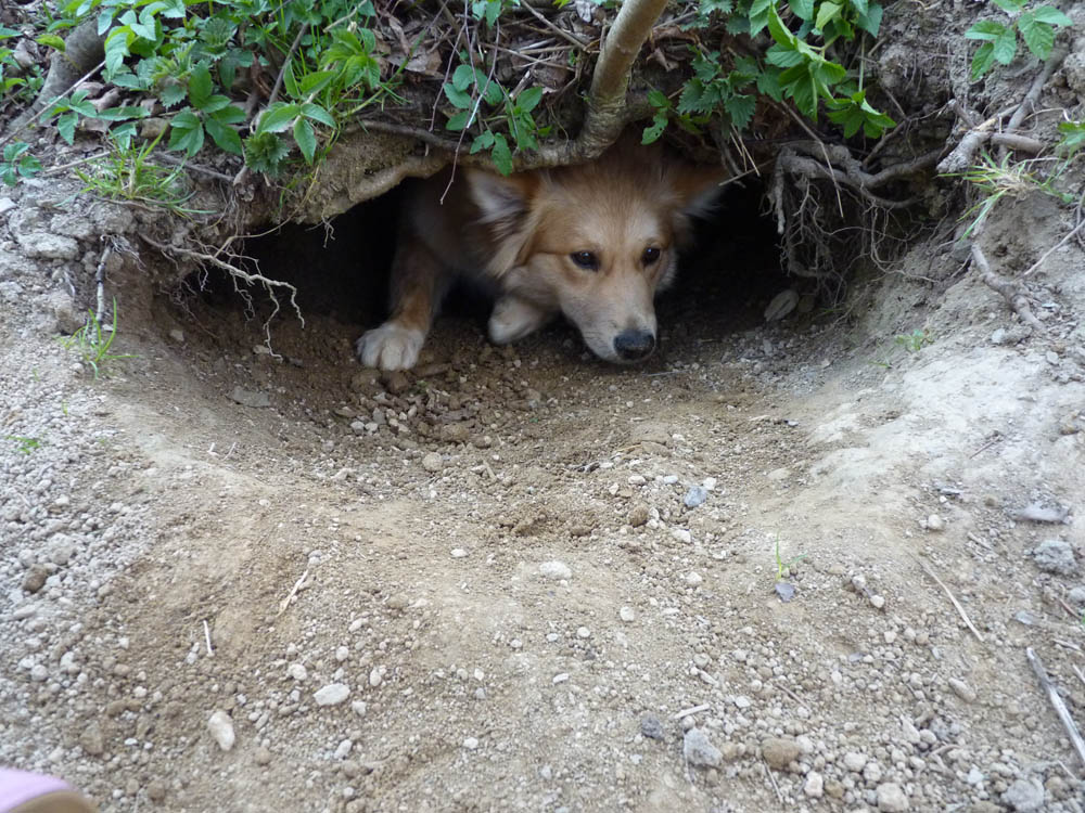 Meine Hunde leben als Rudel zusammen und dürfen sich frei im gesamten Haus bewegen, egal ob Küchen, Wohn- oder Schlafzimmer, sie haben Zugang zu allen Räumen. Es besteht ständig - über eine Hundeklappe - Zugang zu einen kleinen Auslauf. Tagsüber steht ihnen zusätzlich der circa 300qm kleine untere Garten zum Spielen zur Verfügung. Hier können sie toben, spielen oder sich auch mal aus Landschaftsarchitekt austun.